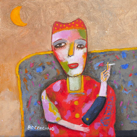 A ses débuts, le travail de jean Boccacino s’est inscrit dans un univers onirique, feutré. Il a ainsi dépeint en grande partie, la société angevine, les paysages de Loire etc. dans une ambiance belle époque de prime abord assez sage. Mais parfois, cette apparente « sagesse » se fissure pour laisser apparaître çà et là, quelques détails « étranges » annonciateurs d’un style plus … libre, qui ne demandait qu’à s’affirmer.